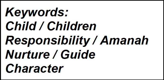 As a conclusion, remember that children are both a blessing and a trust from Allah. A child can be a source of happiness in this world, and, insya-Allah, a means of easing our journey towards Paradise. Therefore, let us look upon them with mercy and compassion, and provide them with an upbringing grounded in noble character and rooted in faith. May Allah, the Exalted, continue to grant us guidance in nurturing the next generation of Muslims. Amin, ya Rabbal ‘Alamin.