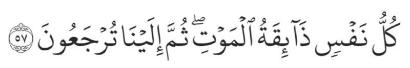 Which means: “Every soul will taste death. Then to us will you be returned.”